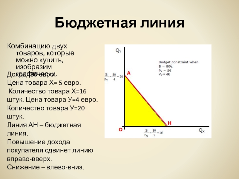 Линия АН – бюджетная линия.