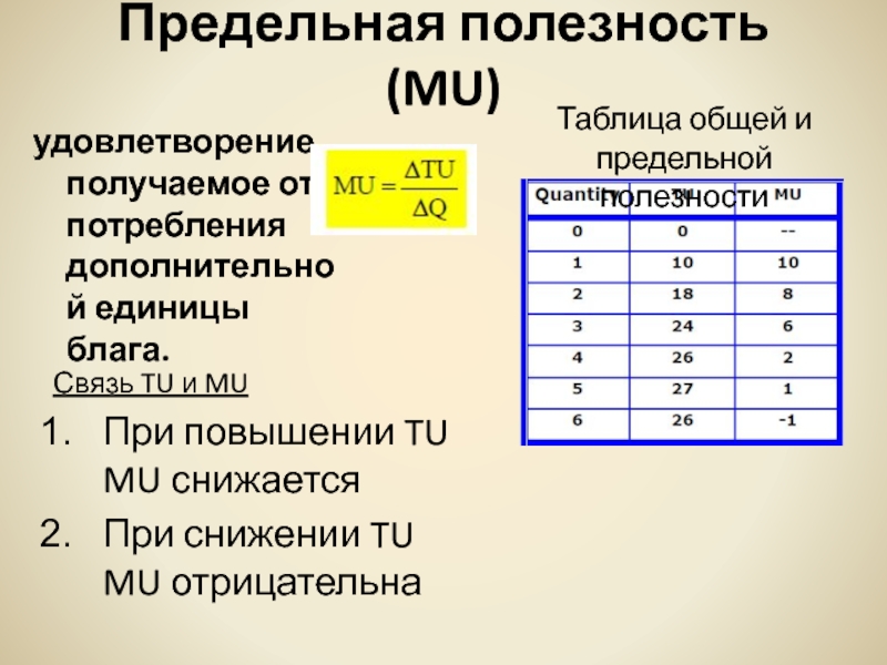Слайд 14Предельная полезность (MU)