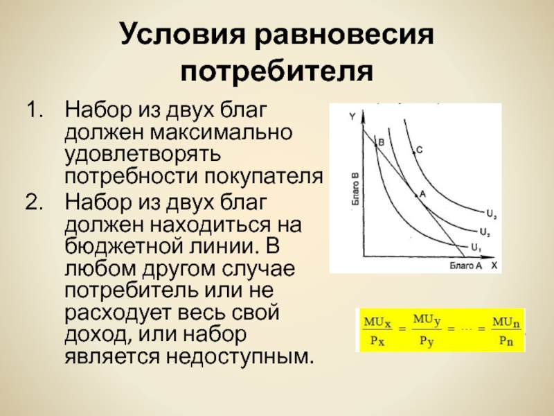 Слайд 29Условия равновесия потребителя
