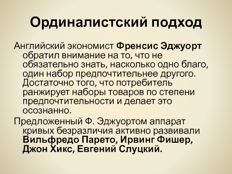 Слайд 17Ординалистский подход