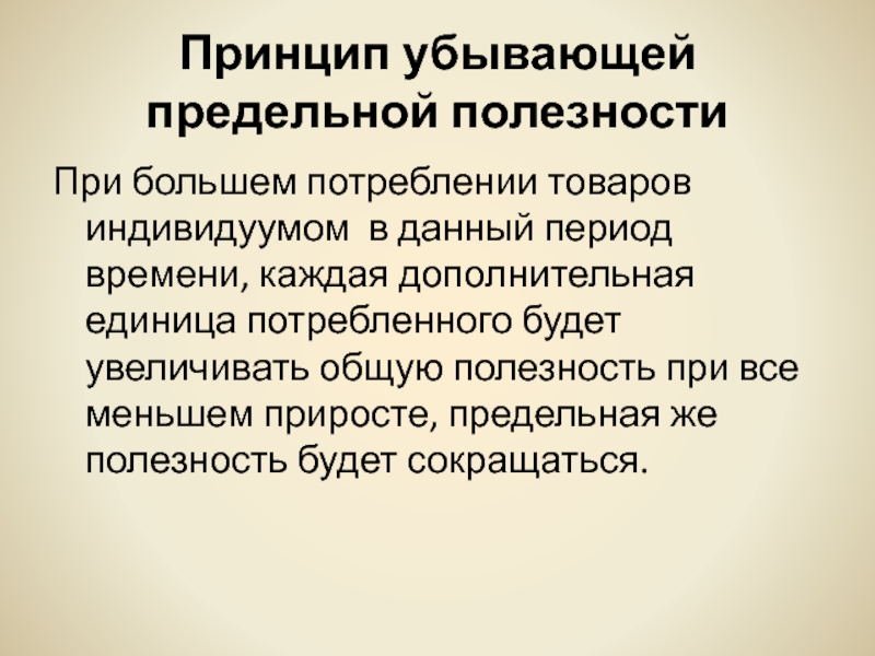 Слайд 13Принцип убывающей предельной полезности