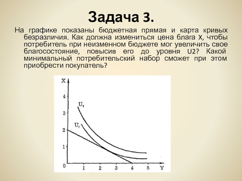 неизменном бюджете мог увеличить свое благосостояние, повысив его до уровня U2? Какой минимальный потребительский набор сможет при этом приобрести покупатель?