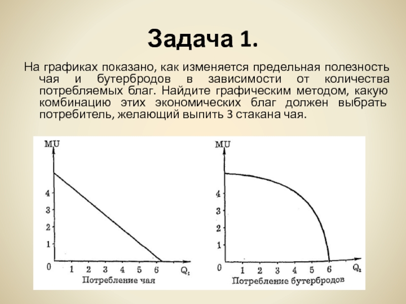 На графиках показано, как изменяется предельная полезность чая