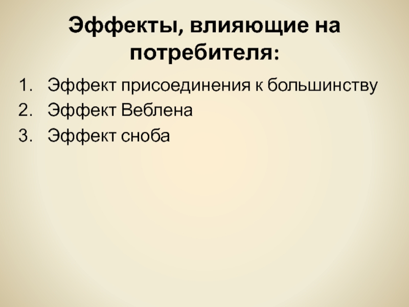Слайд 6Эффекты, влияющие на потребителя: