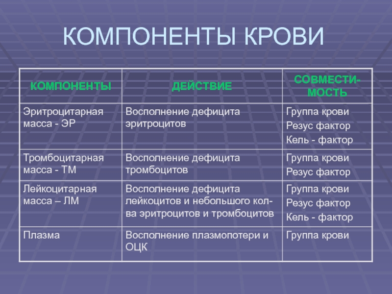 ПРИ ПЕРЕЛИВАНИИ КОМПОНЕНТОВ