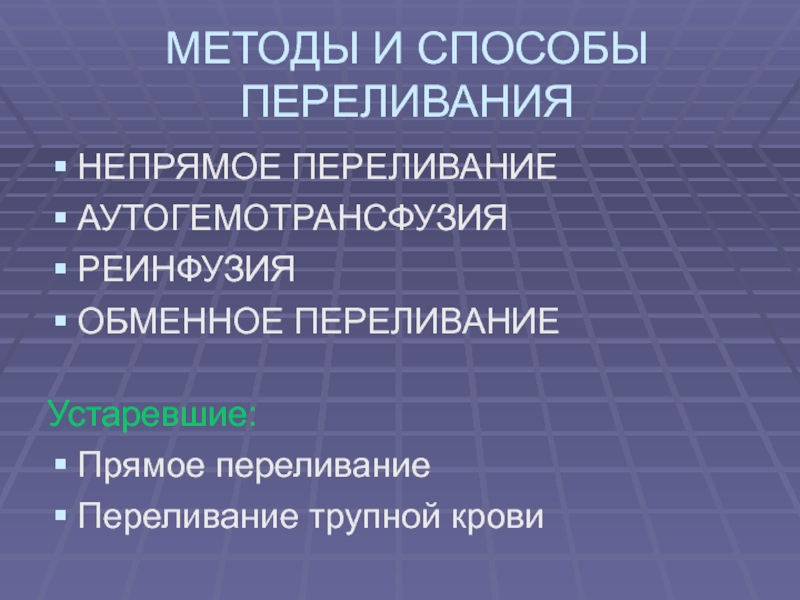 Слайд 9МЕТОДЫ И СПОСОБЫ ПЕРЕЛИВАНИЯ