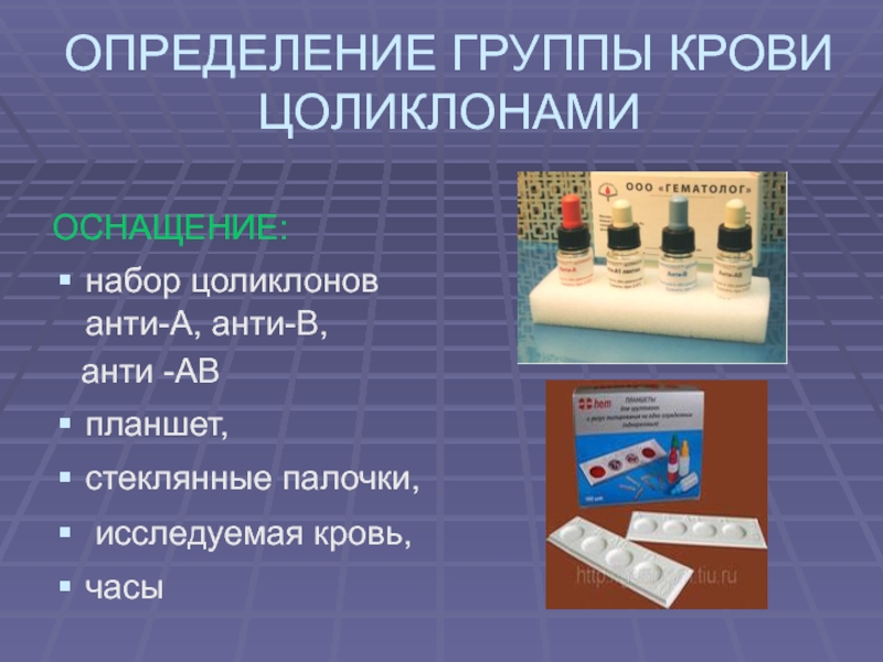 Слайд 6ОПРЕДЕЛЕНИЕ ГРУППЫ КРОВИ ЦОЛИКЛОНАМИ
