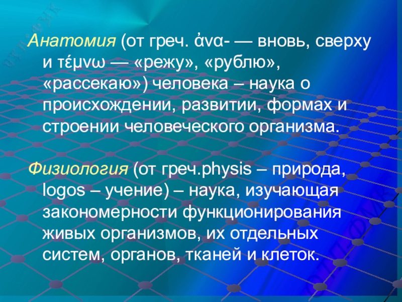 Слайд 3Анатомия (от греч. ἀνα- — вновь, сверху и τέμνω —