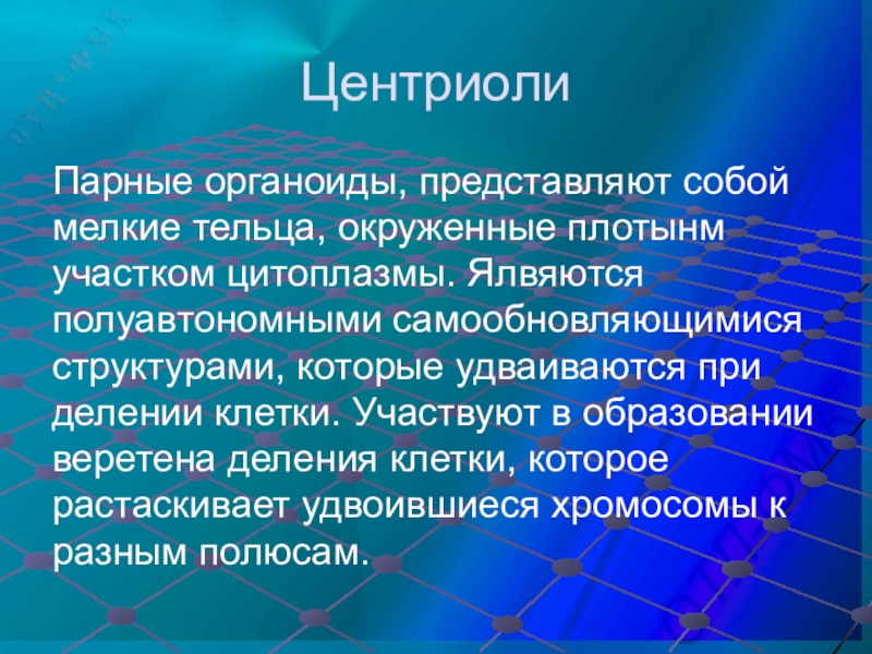 Парные органоиды, представляют собой мелкие тельца, окруженные плотынм участком цитоплазмы.