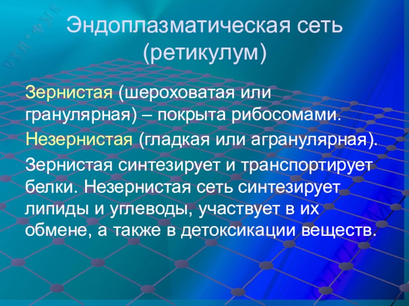Зернистая синтезирует и транспортирует белки. Незернистая сеть синтезирует липиды
