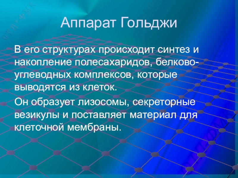 В его структурах происходит синтез и накопление полесахаридов, белково-углеводных