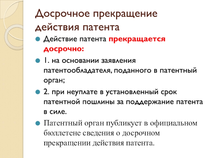 Патентный орган публикует в официальном бюллетене сведения о досрочном прекращении действия патента.