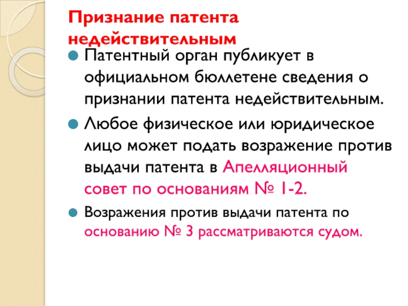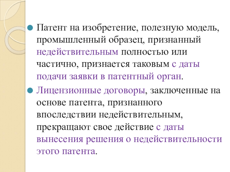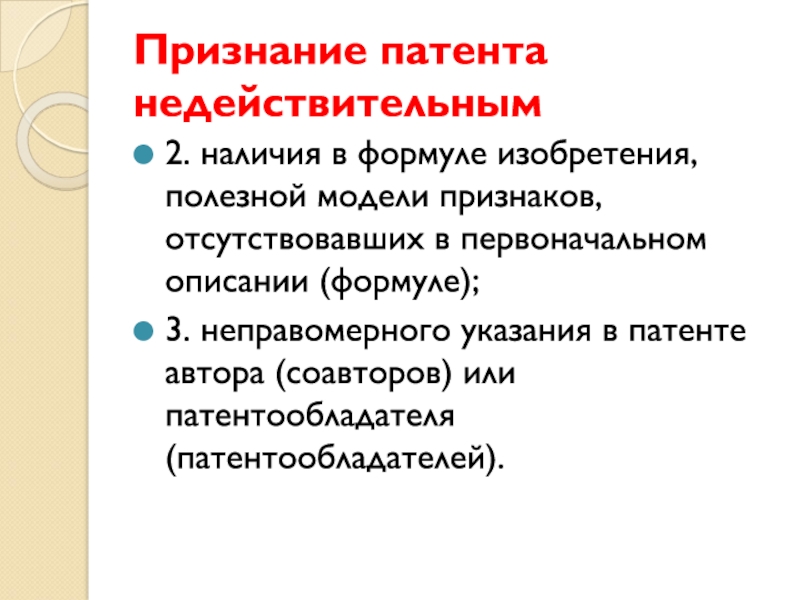 Слайд 57Патент на изобретение, полезную модель, промышленный образец, признанный недействительным полностью