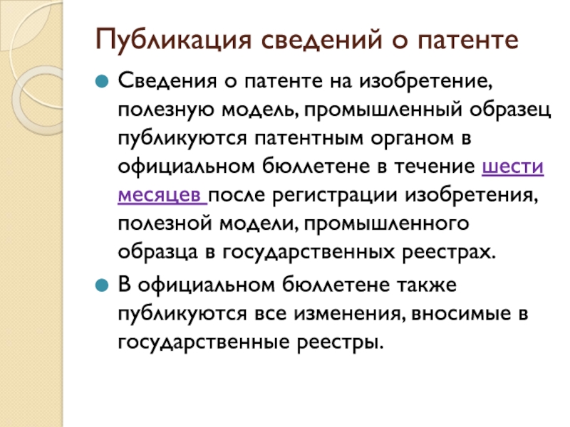 промышленный образец публикуются патентным органом в официальном бюллетене в течение