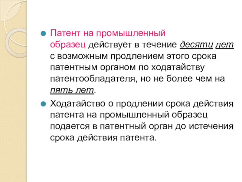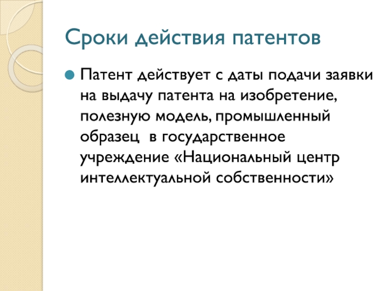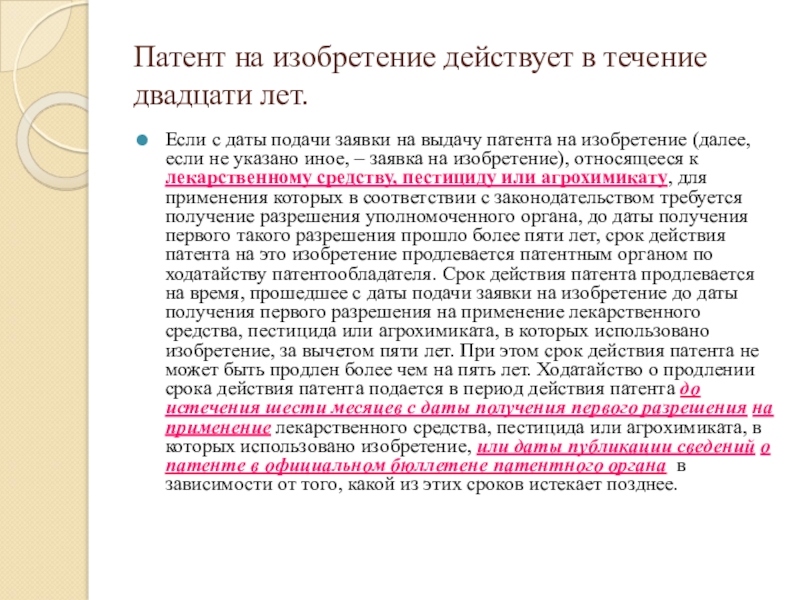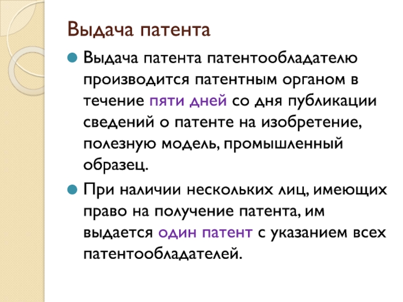 Выдача патента патентообладателю производится патентным органом в течение пяти