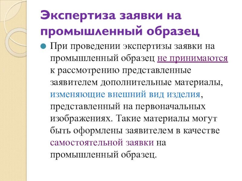 проведения экспертизы заявки на промышленный образец проверяются наличие необходимых документов, соблюдение установленных требований к ним и рассматривается вопрос о том, относится ли заявленное предложение к объектам, охраняемым в качестве промышленных образцов.