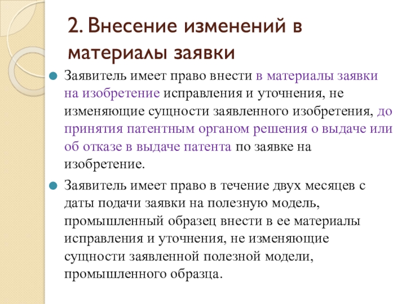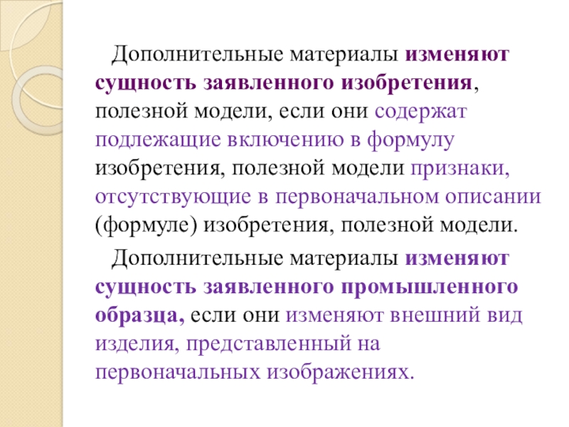 2. наличия в формуле изобретения, полезной модели признаков, отсутствовавших
