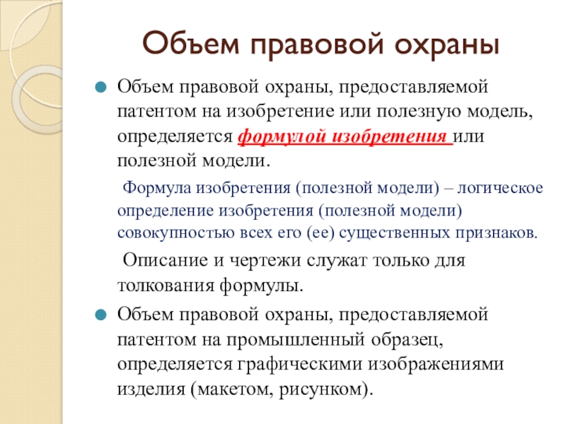 Объем правовой охраны, предоставляемой патентом на изобретение или