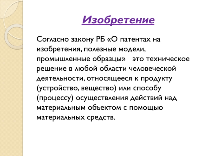 Согласно закону РБ «О патентах на изобретения, полезные модели,