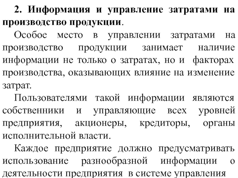 Слайд 1ОСНОВЫ УПРАВЛЕНИЯ ЗАТРАТАМИ НА ПРОИЗВОДСТВО