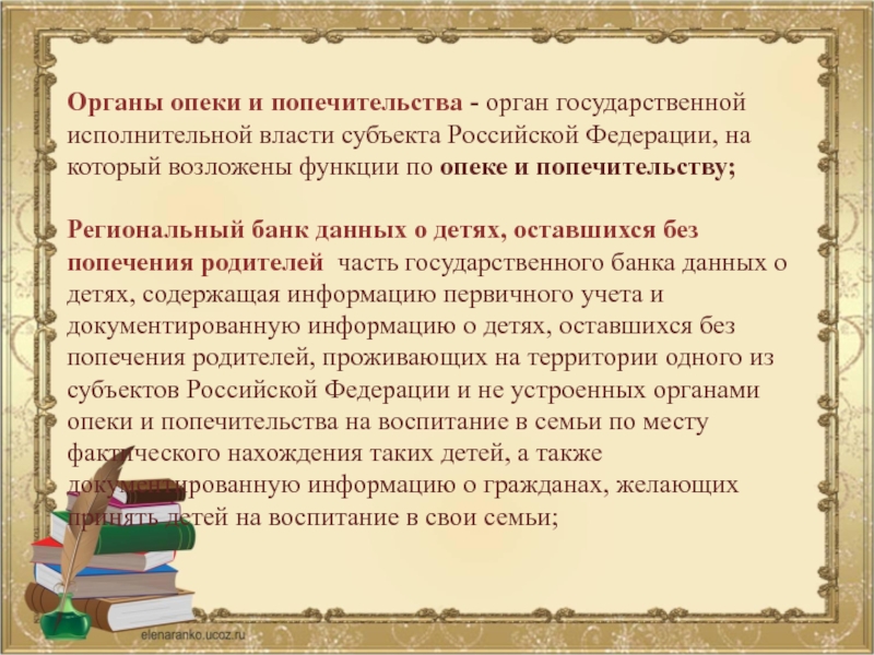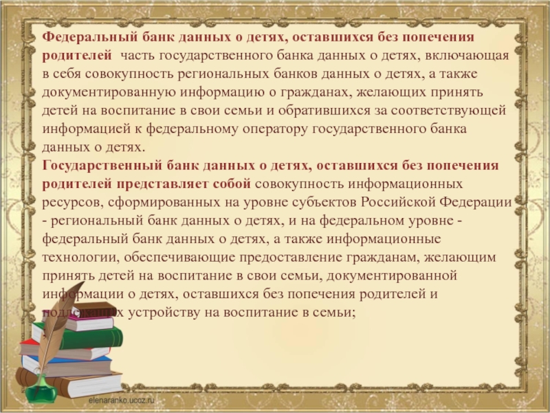 Слайд 10Федеральный банк данных о детях, оставшихся без попечения родителей часть