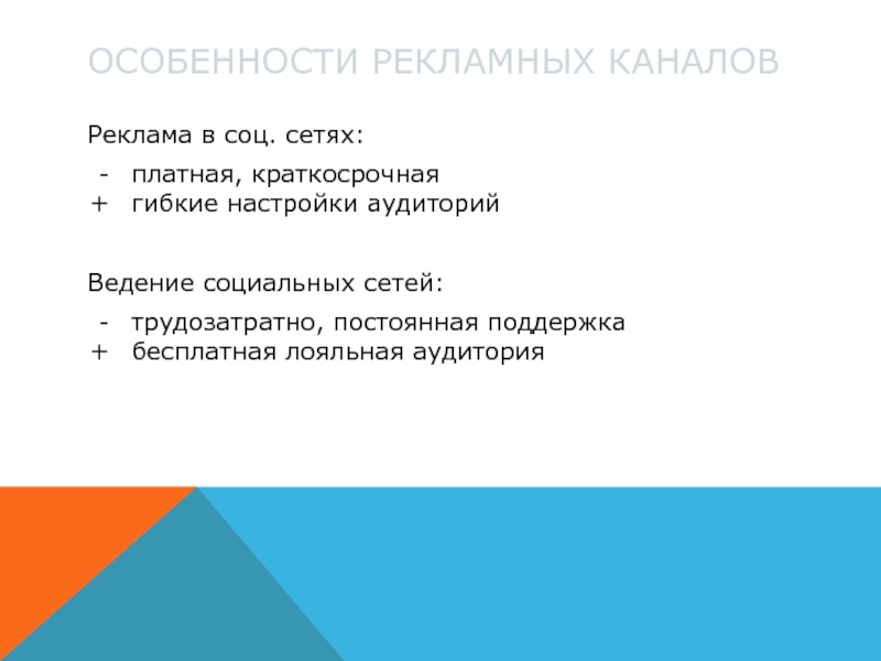 Слайд 24ОСОБЕННОСТИ РЕКЛАМНЫХ КАНАЛОВ