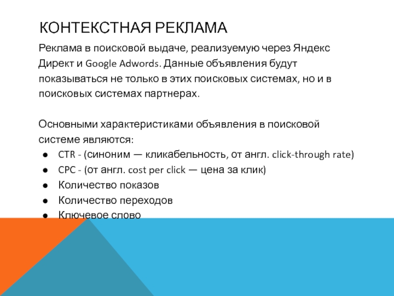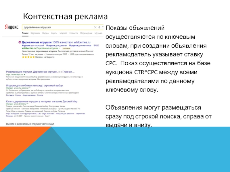 рекламодатель указывает ставку CPC. Показ осуществляется на базе аукциона CTR*CPC