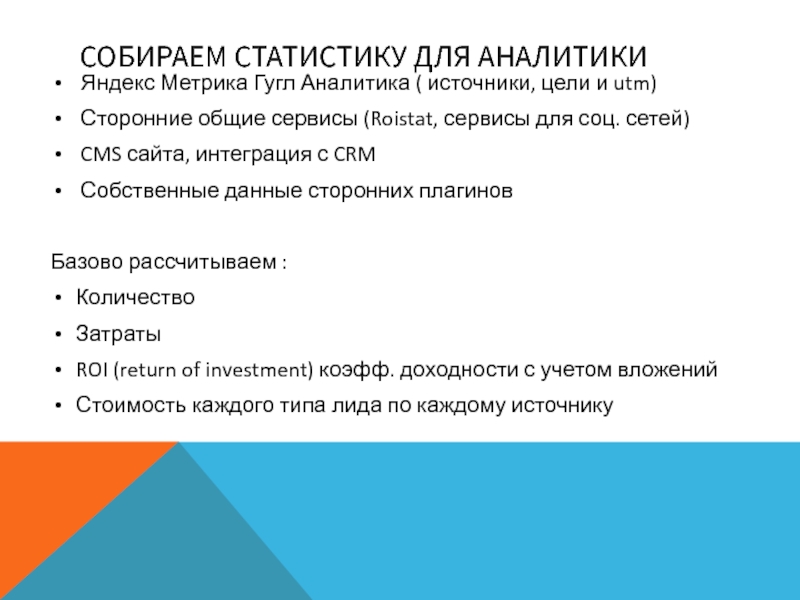 Слайд 13СОБИРАЕМ СТАТИСТИКУ ДЛЯ АНАЛИТИКИ