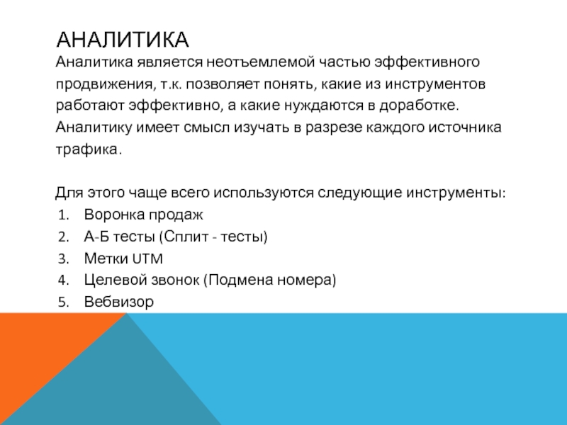 Аналитика является неотъемлемой частью эффективного продвижения, т.к. позволяет понять, какие