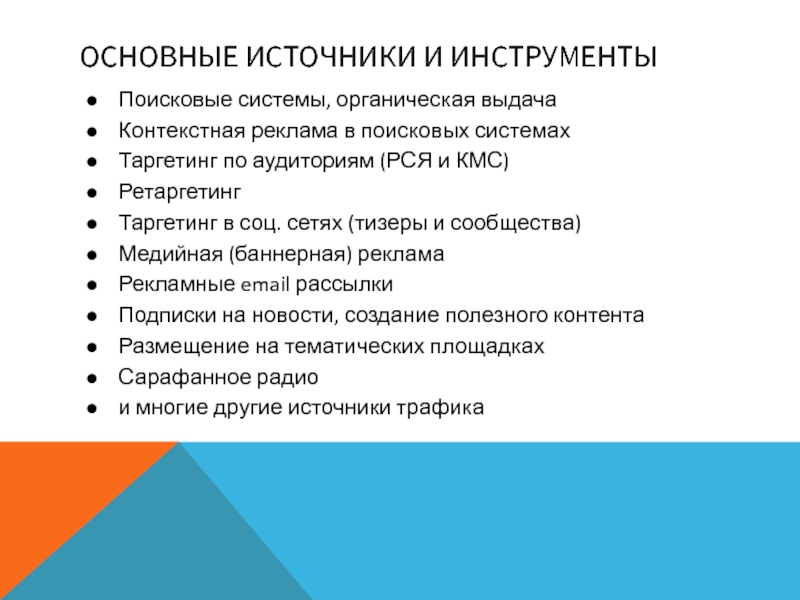 Слайд 7СТРАТЕГИЯ: ИСТОЧНИКИ ТРАФИКА