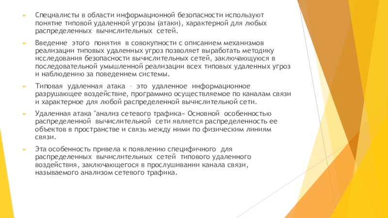 Слайд 10Специалисты в области информационной безопасности используют понятие типовой удаленной угрозы