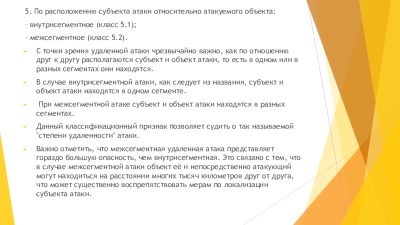 Слайд 95. По расположению субъекта атаки относительно атакуемого объекта: