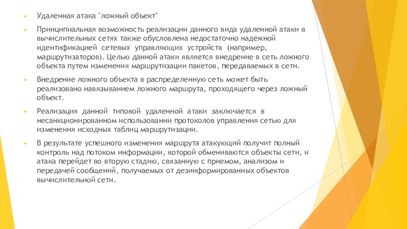 Внедрение ложного объекта в распределенную сеть может быть реализовано навязыванием ложного маршрута, проходящего через ложный объект.