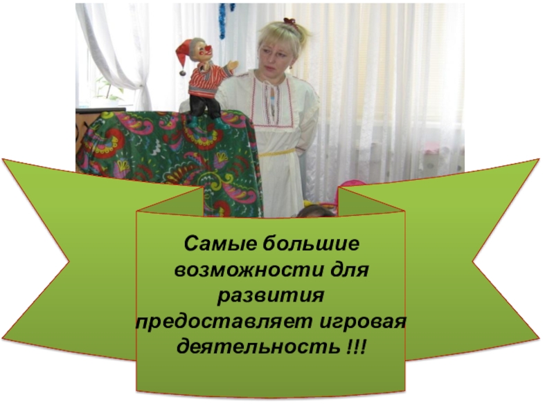 (введение в игровую ситуацию, наделяя игровым смыслом действия ребенка с предметами)