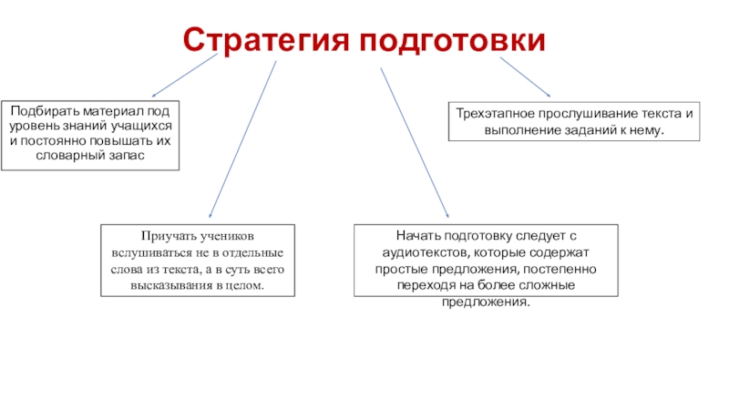 Начать подготовку следует с аудиотекстов, которые содержат простые предложения, постепенно переходя на более сложные предложения.