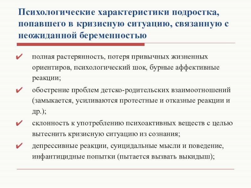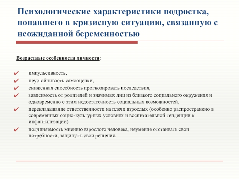 Слайд 6Психологические характеристики подростка, попавшего в кризисную ситуацию, связанную с неожиданной
