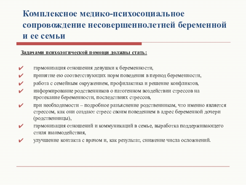 Слайд 20Комплексное медико-психосоциальное сопровождение несовершеннолетней беременной и ее семьи