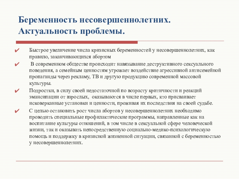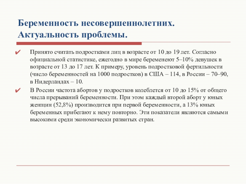 Слайд 2Беременность несовершеннолетних. Актуальность проблемы.