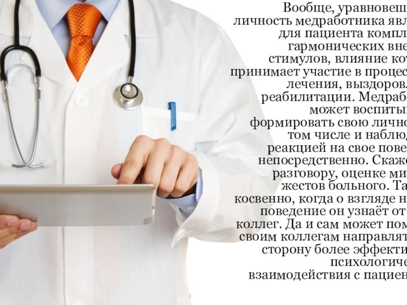 Слайд 8 Вообще, уравновешенная личность медработника является