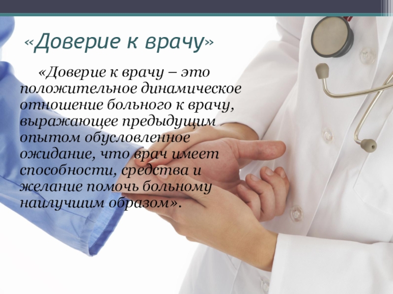 обусловленное ожидание, что врач имеет способности, средства и желание помочь больному наилучшим образом».