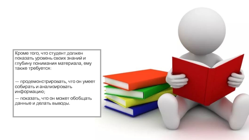 Кроме того, что студент должен показать уровень своих знаний и глубину понимания материала, ему также требуется:— продемонстрировать,