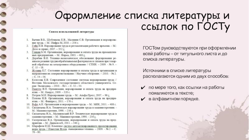 Слайд 11Оформление списка литературы и ссылок по ГОСТу