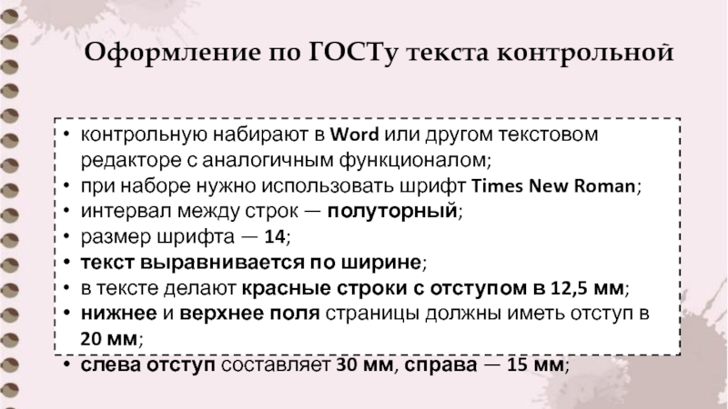 Слайд 7Оформление по ГОСТу текста контрольной