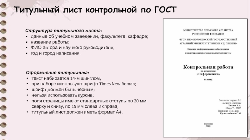 Слайд 10Титульный лист контрольной по ГОСТ