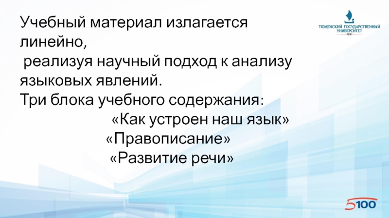 Слайд 12Учебный материал излагается линейно,