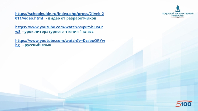 Слайд 22https://schoolguide.ru/index.php/progs/21vek-2011/video.html - видео от разработчиков