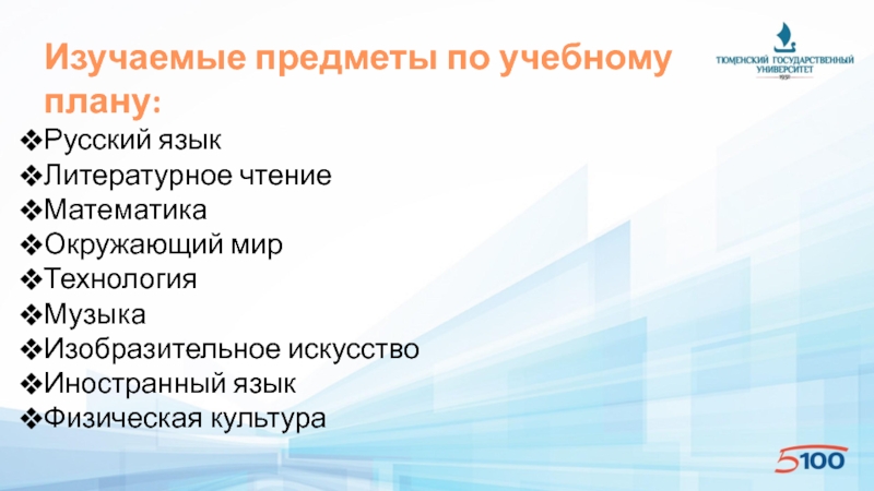 Слайд 5Изучаемые предметы по учебному плану: