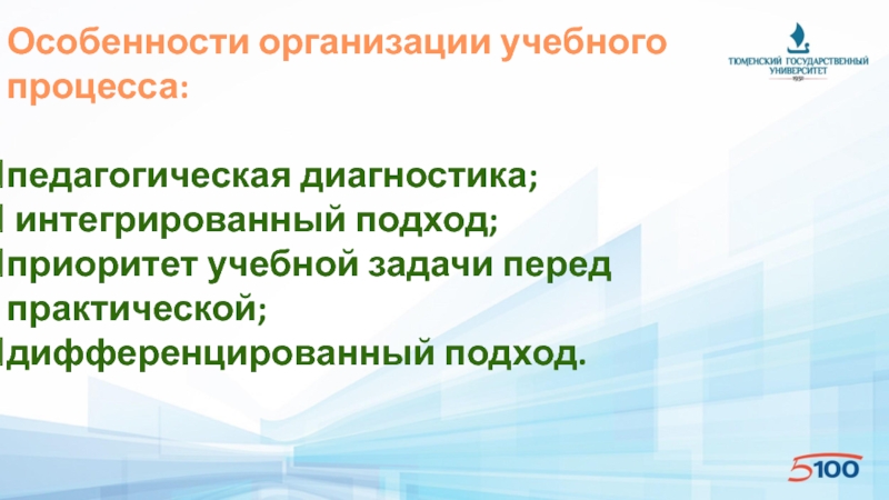 Слайд 7Особенности организации учебного процесса: