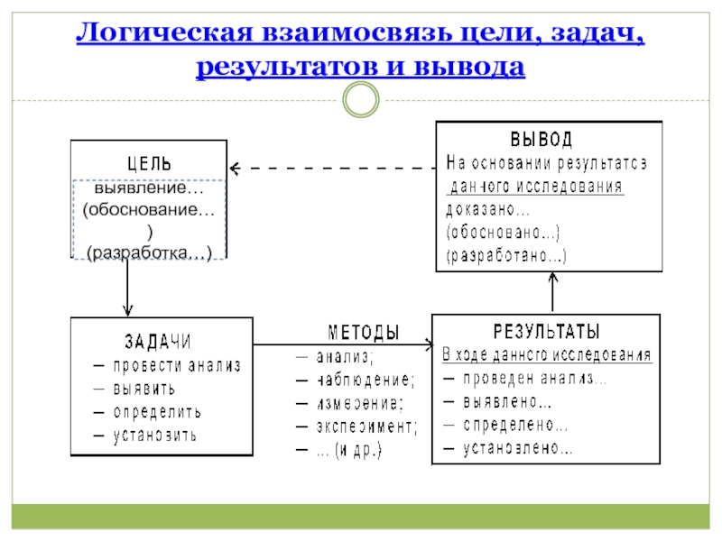 Слайд 45Логическая взаимосвязь цели, задач, результатов и вывода