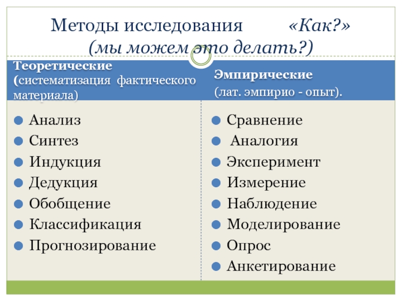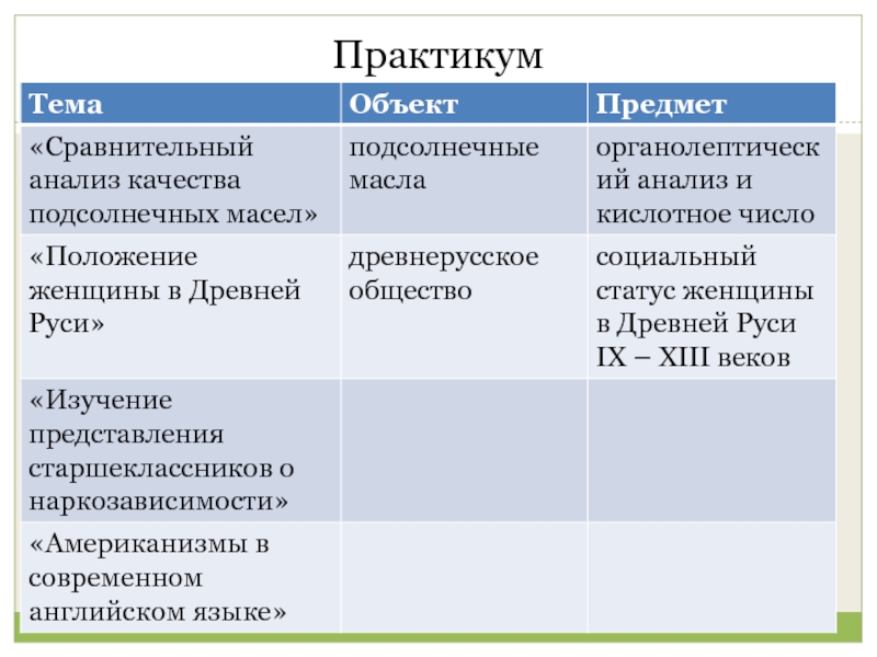 рассматриваемых фактов, характеристика методов решения проблемы, сравнение известных и новых